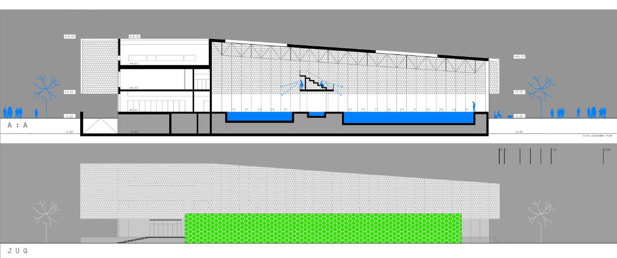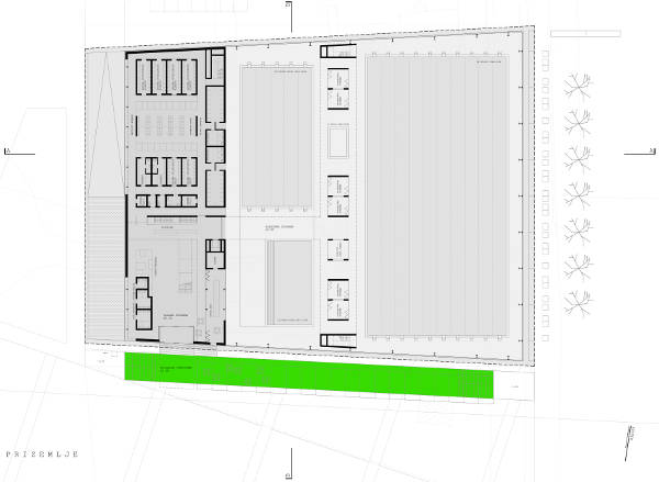 Romantični ambijent gradskog vrta, nekadašnji Stadtgarten, postoji još samo u memoriji građana Osijeka. Od svega, preostao je samo naziv dijela grada bez obilježja vrta ili parka. Prihvaćamo memoriju stanovnika kao kontekst, želju i žal građana za zelenilom kao motivaciju. Građevina je „bijela transparentna tvrđa“ koja komunicira sa okolinom i uz koju su omeđeni ozelenjeni potezi. Duž južnog pročelja je ozelenjeni potez prostora ulaza i terasa dok se uz istočnu ostakljenu stranu protežu drvoredi sa klupama. Zelenim potezima uz novu građevinu vraćeni su mikro ambijenti nekadašnjeg gradskog vrta.
