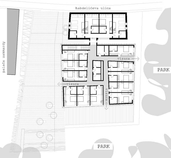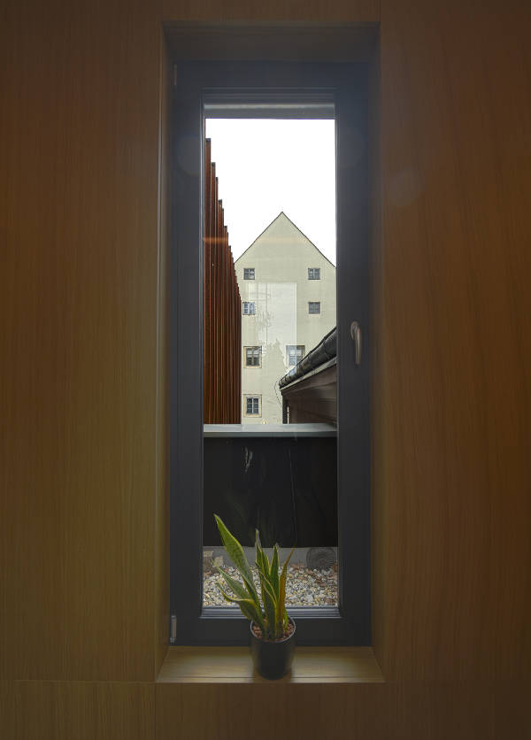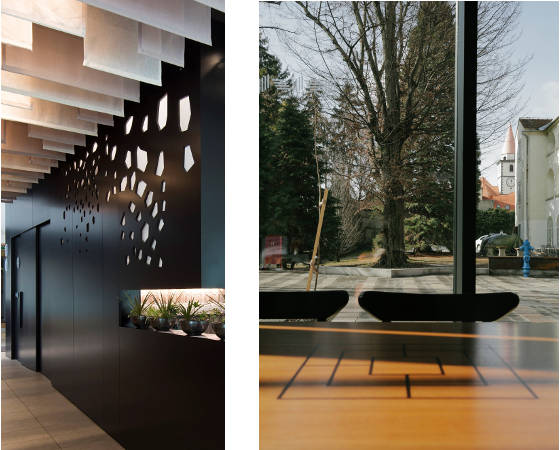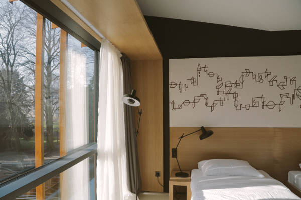 Sobe „park“ nalaze se na katu dogradnje, uronjene su u parkovno zelenilo, organizirane su uz hodnike koji sugeriraju putanje gradskih ulica, i nude vizure na bitne točke okruženja u kojem se objekt nalazi. Sobe „gallery“ se nalaze u volumenu potkrovlja ulične građevine, svaka soba ima vlastitu galeriju u prostranom dvoetažnom volumenu.