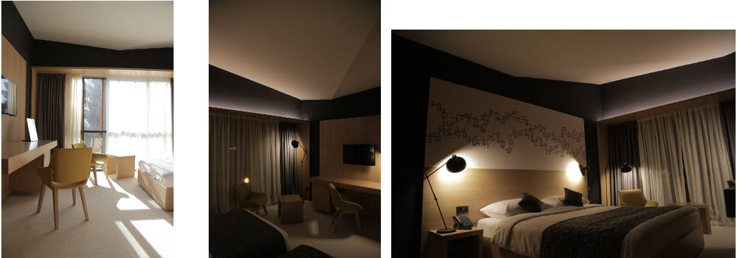 Svaka soba u hotelu ima prepoznatljiv identitet u kojem se prepoznaje i pamti Varaždin. Vizurama i art grafikama iskorišten je benefit iznimne lokacije hotela u povijesnoj jezgri.