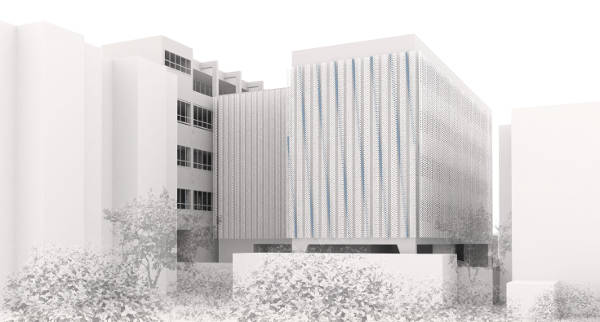 Distancirano od linije povijesnog pročelja uvodi se staklena membrana.